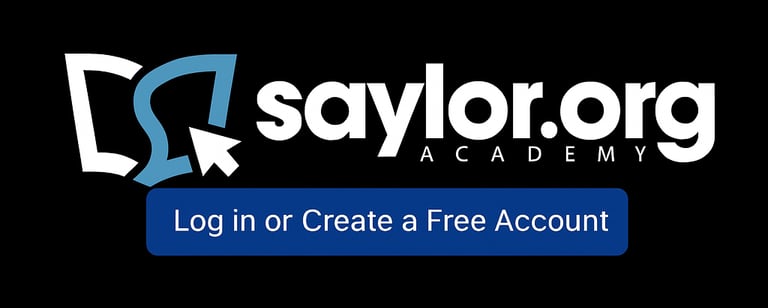 Learn new skills or earn credit towards a degree - at your own pace, with no deadlines - using free courses from Saylor Academy. Join the 2,381,146 students that have started our journey with us. We are committed to removing barriers to education and helping you build essential skills to advance your career goals. Create an account and log in to track your course progress, gain access to final exams, and earn certificates of completion.